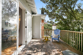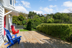 - Four double-bedrooms, all west-facing for late sun and lovely treetop views over the front lawn (complete with deck) and Wadestown